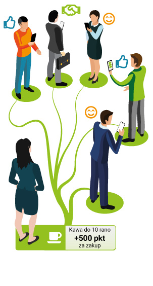 Korzystając z funkcji aplikacji Klub Klienta klienci polecają Twój program lub zapraszają nowych klientów do wspólnego udziału, mogą też podarować nagrody zdobyte w programie.
