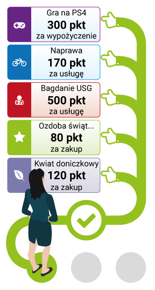 Klient, aby otrzymać możliwość skorzystania z kuponu, musi uzbierać określoną przez właściciela (przy tworzeniu kuponu) ilość punktów. Zbiera punkty poprzez płacenie za usługi lub towary. Nawet jeśli punkty zostaną mu darowane przez innego użytkownika, musiały zostać przez niego zdobyte.